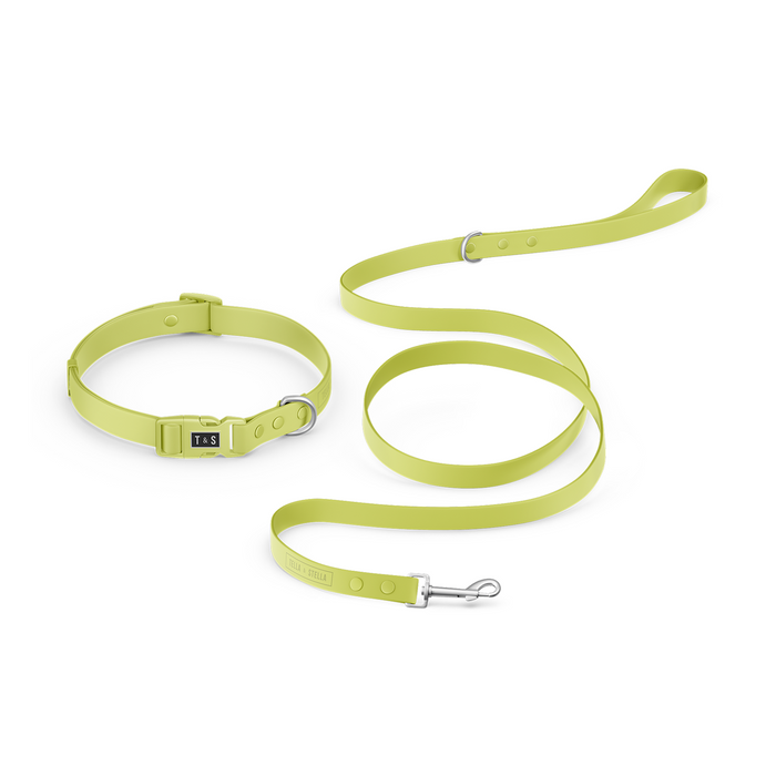 Des duos collier et laisse 100% imperméable conçus pour le plein air, maintenant offerts en couleurs unies vibrantes pour un look sophistiqué et durable! Ce duo s'agence parfaitement avec notre nouveau harnais robuste.