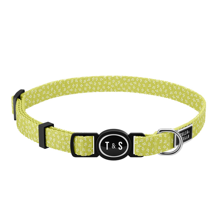 Apportez une touche de fraîcheur et de légèreté à vos balades avec ce motif charmant de petites feuilles blanches dansant sur un fond vert chartreuse. Un collier fait de matériaux de qualité, résistant et sécuritaire pour ton chat.