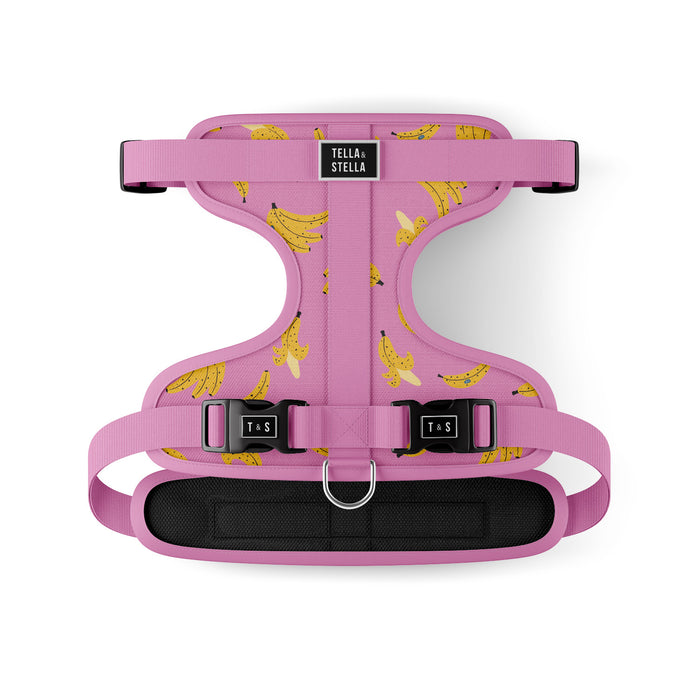 Lola ADORE son nouveau harnais bananes! Il est confortable, propose plusieurs ajustements et le design est superbe! Nous avions aussi commandé la laisse imperméable: un gros wow! Nous recommandons!