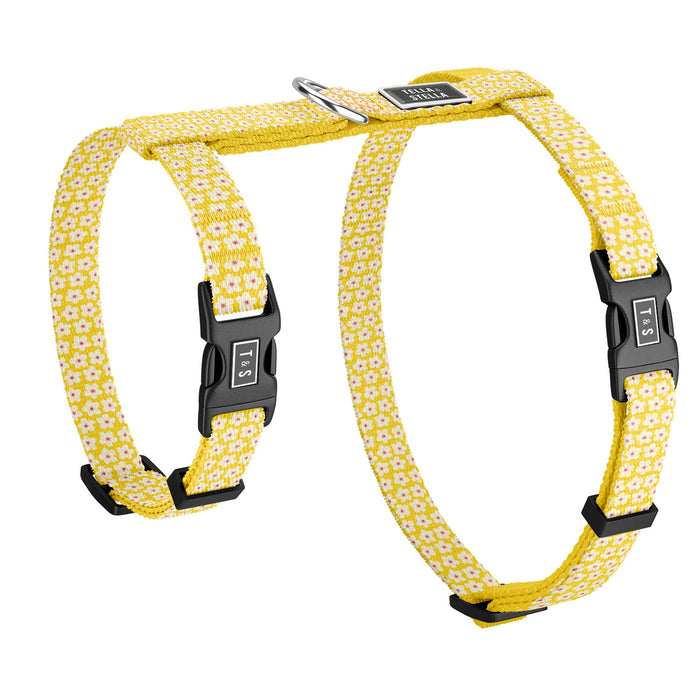 Quite charming and delicate, our Florence motif is dotted with small white and pink flowers on an adorable yellow background. A harness made of quality materials, resistant and safe for your cat.