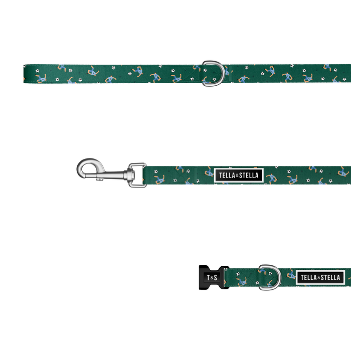 A design made for play, inspired by soccer culture. A collar and leash made from quality materials, durable, safe and perfect for walks with your dog.