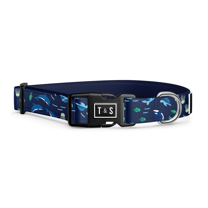 A bunch of whales, dolphins, turtles, jellyfish and colorful fishes are having a little rendez-vous on our refreshing design! It's made from recycled water bottles and quality materials that ensures strength and safety for your dog.