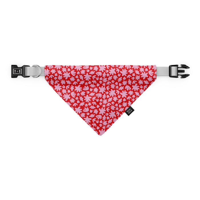 Celebrate your dog's beauty and charm with Mila, a lively abstract floral design. Made from quality materials, this bandana is soft and resistant. Ingenious and practical, it slips easily into your pet's collar, without knots or complicated fastenings.