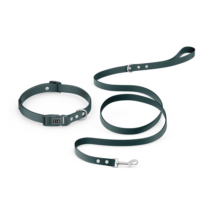Des duos collier et laisse 100% imperméable conçus pour le plein air, maintenant offerts en couleurs unies vibrantes pour un look sophistiqué et durable! Ce duo s'agence parfaitement avec notre nouveau harnais robuste.